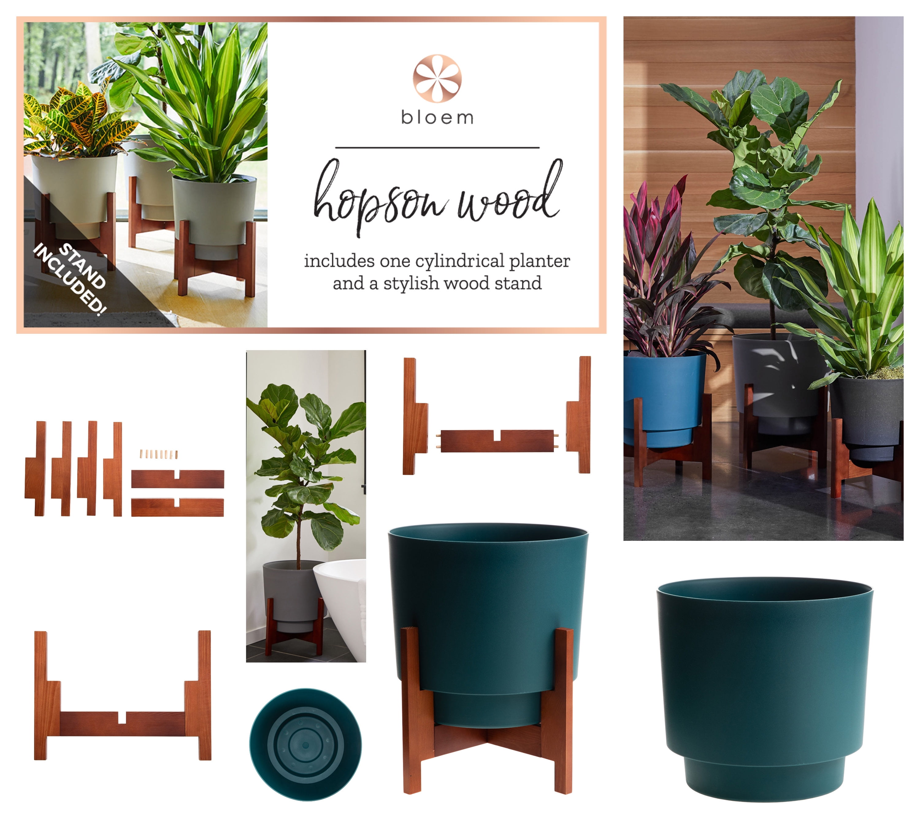 Bloem Hopson 14 In Black Planter With Wood Stand Walmart Com